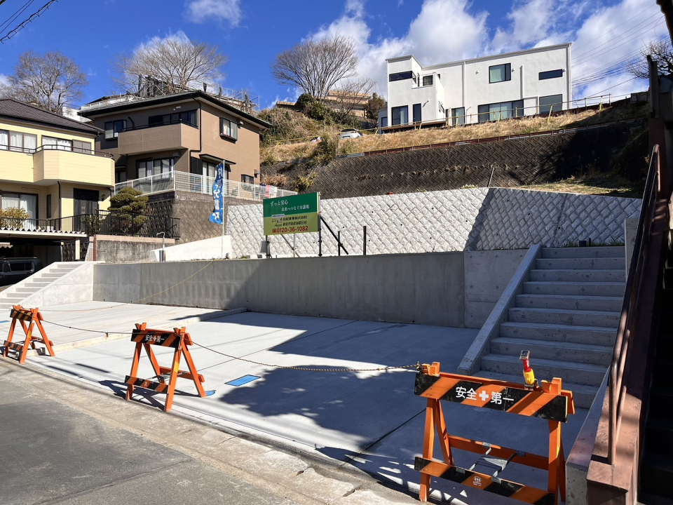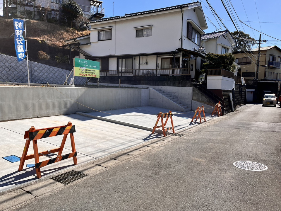 駐車スペース舗装済み 道路から一段上がった宅地になりますので、日当たりや見晴らしも良好です。